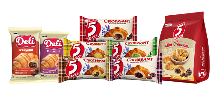 The first ready-to-eat croissant in hygienic packaging in Indonesia, practical for breakfast or snacking anywhere with a long product shelf life. Its crispy croissant pastry comes with bigger content and fillings for various tastes and size.