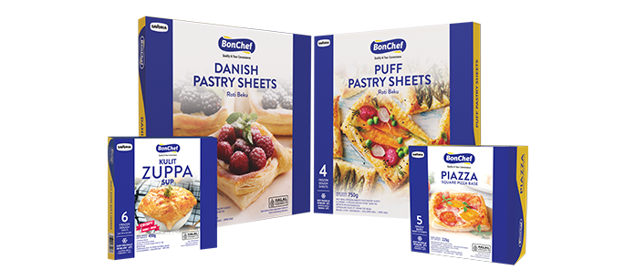 Our specialization and expertise in frozen dough, ready-to-bake, and ready-to-eat products is the best solution for patisserie shops, café, and retail businesses. The products are practical and convenient to use with long shelf-live; made with consistent quality, and certified food safety management, backed up with caring technical services.